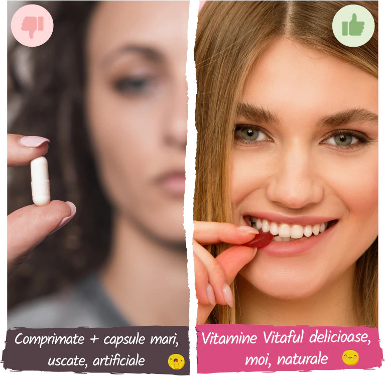 De ce? Pentru că delicioasele vitamine sub formă de mici inimioare le vei lua cu bucurie, zi de zi. Mai mult decât atât, multe persoane ne scriu că le este greu să ia doar 2 bucăți pe zi, și nu mai multe!